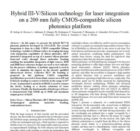 Hybrid III–V/Silicon Technology for Laser Integration on a 200-mm Fully CMOS-Compatible Silicon Photonics Platform